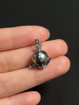 C39641008 18k seawater pearl pendant with undetermined color origin, accented with diamonds, total weight approximately 3.37g, size about 11.9mm