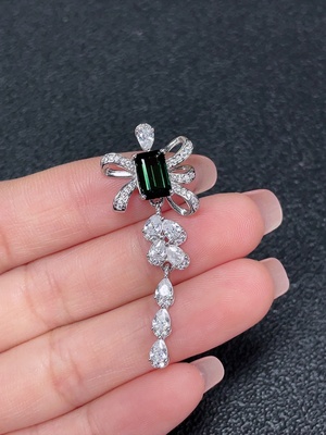 C35097239 18K Tourmaline Pendant with Diamond Accents, Total Weight Approx. 1.8g, Stone Size Approx. 5.9*4.3mm