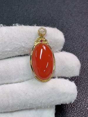 C34949897 18K Red Agate Pendant with Diamond Accents, Colorless, Total Weight Approx. 7.21g