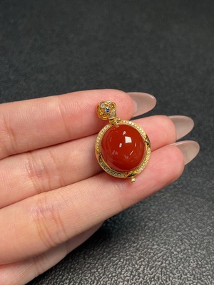 C34067111 18K Red Agate Pendant with Diamond Accents, Colorless, Total Weight Approx. 6.03g, Size Approx. 14.3*13.2mm