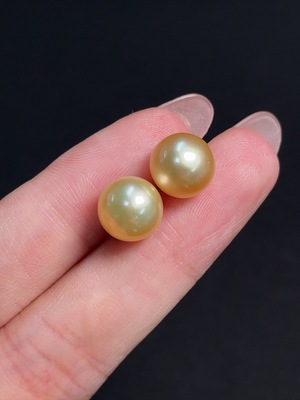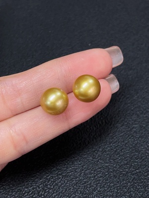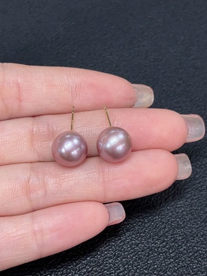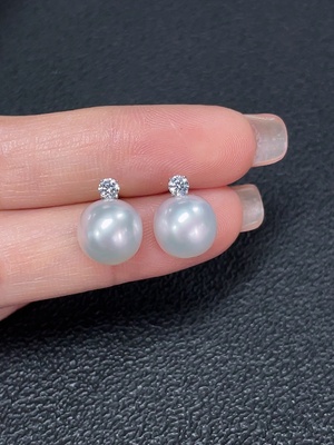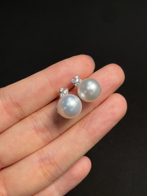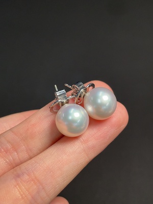 C39639179 Seawater pearl earrings,疑似镀金针,其余18k金,总重约3.17克,卡7.1mm左右