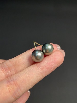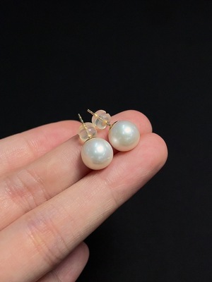 C40678914 Seawater pearl stud earrings 18k gold approx. 9.5mm total weight about 2.54g color origin undetermined