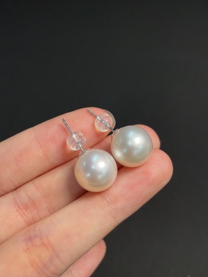 C39612894 Seawater pearl stud earrings, non-gold setting, approximately 10.4mm, total weight about 4.34g