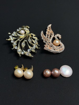 C38544455 Pearl-set earrings + brooch + loose beads, non-gold setting, total weight approximately 46.27g