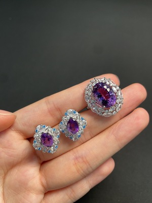 C40704810 Tourmaline, Crystal Inlaid Ring + Earrings, Non-Gold Inlaid, Total Weight About 11.54g