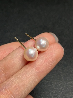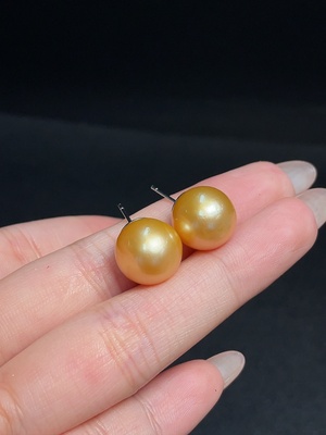 C35099423 Seawater pearl earrings 18k gold color origin undetermined total weight approximately 1.11g size about 7mm