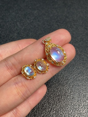 C38485272 Moonstone Pendant + Earrings Non-Gold Total Weight Approx. 3.94g Sell as a Lot