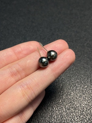 C33888855 Seawater pearl earrings non-gold total weight about 1.61g carat 7.3mm with tourmaline