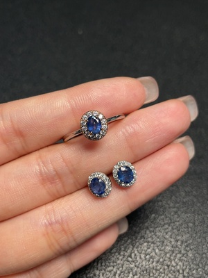 C35154201 Sapphire Earrings + Ring, Adjustable Non-Gold, Total Weight Approx. 2.77g, Sell as a Lot