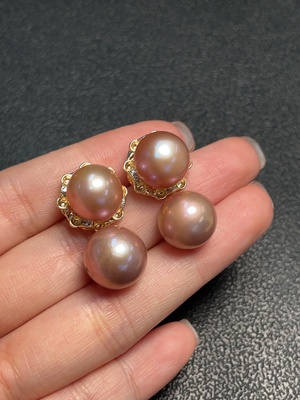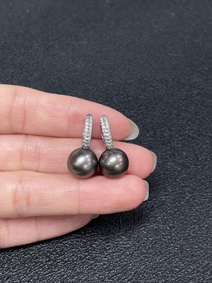 C35093121 18k seawater pearl earrings with undetermined color origin and diamond accents, total weight approximately 3.6g, size about 9.2mm