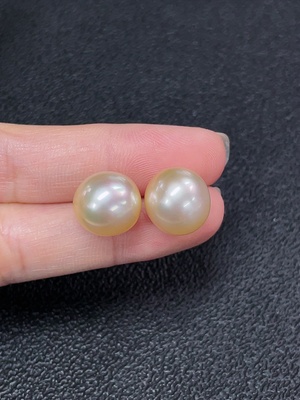 C35099423 Seawater pearl earrings 18k gold color origin undetermined total weight approximately 1.11g size about 7mm
