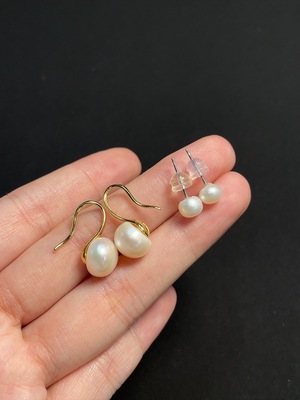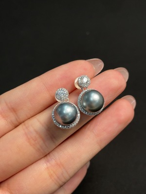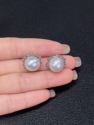 C25847643 Seawater pearl earrings non-gold setting total weight about 3.48g card 8.7mm approx