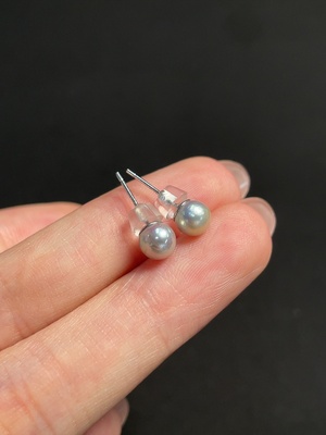 C39640343 Seawater Pearl Earrings, color origin undetermined, non-gold, total weight approximately 0.64g, size about 5.2mm