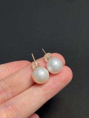 C39590401 18k seawater pearl earrings, color origin undetermined, total weight approx. 2g, size about 8.2mm
