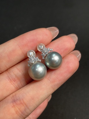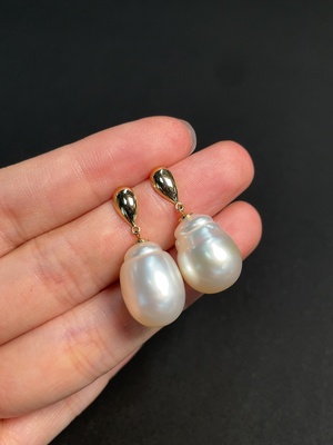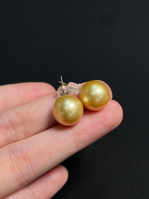 C40679773 18k seawater pearl earrings, color origin undetermined, non-diamond, total weight approximately 4.84g, size about 11.3mm