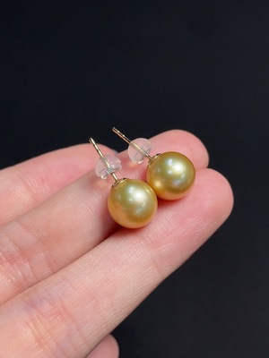 C38527786 18k seawater pearl earrings, color origin undetermined, total weight approximately 3.45g, size about 9.3mm