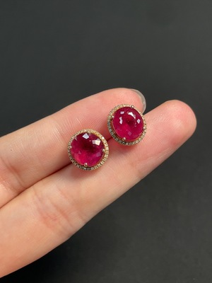 C37436873 Garnet Earrings with 73% Gold Content and Diamond Accents, Total Weight Approximately 3.7g