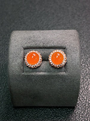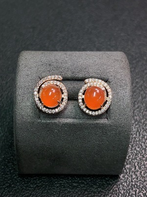 C34039454 Red Agate Earrings Non-Gold Total Weight Approx. 2.44g Size 6.9*6.4mm