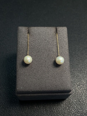 C37416567 Pearl Earrings with 37% Gold Content, Total Weight Approx. 2.5g, Size Around 7.9mm