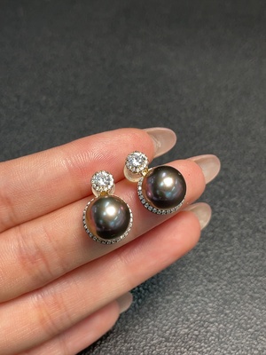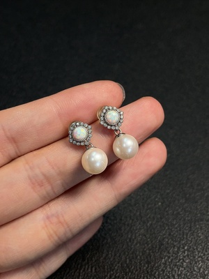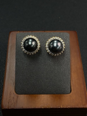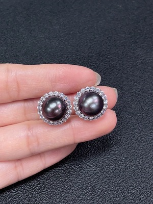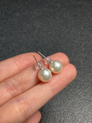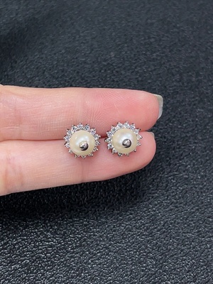C25847643 Seawater pearl earrings non-gold setting total weight about 3.48g card 8.7mm approx