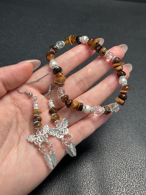 C34991650 Amber & Beeswax Bracelet + Earrings Non-Gold, Stones May Be Non-Natural, Total Weight Approx. 12.3g, Sell as a Lot