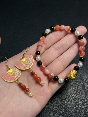 C38527988 South Red Agate Bracelet + South Red Agate Earrings Non-Gold Visible Organic Material Consider Non-Natural Matching Stones Total Weight Approx. 16.67g Sell as a Lot