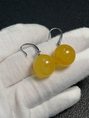 C38503112 Amber Beeswax Earrings Non-Gold, Stones May Be Non-Natural, Total Weight Approx. 5g, Size About 13.8mm