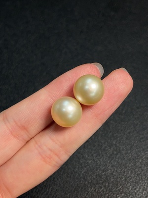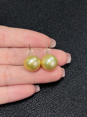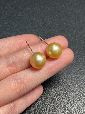 C38527796 18k seawater pearl earrings, color origin undetermined, total weight approximately 5.84g, size about 12.3mm