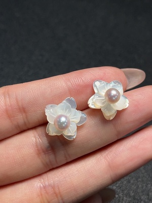 C35201054 Seawater pearl earrings non-gold color origin undetermined total weight approximately 5.66g size about 5.3mm