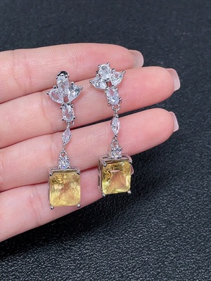C38486557 Topaz earrings, color origin undetermined, non-gold, total product weight approximately 1.96g