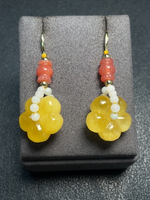 C38486148 Amber Beeswax Earrings with Salt Source + Jadeite Non-Gold Colorless Film Coating Total Weight Approx. 9.79g