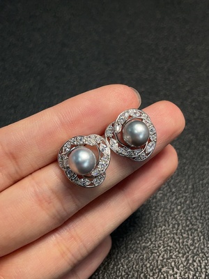 C38528214 Seawater pearl earrings, color origin undetermined, non-gold, total weight approximately 4.45g, size about 7.5mm