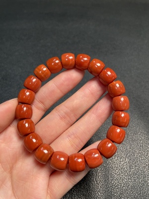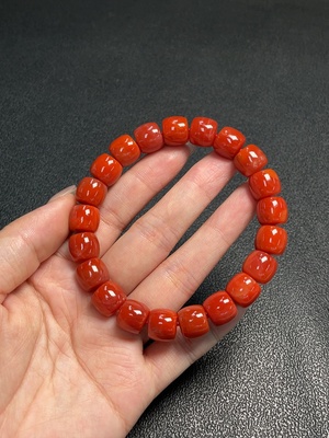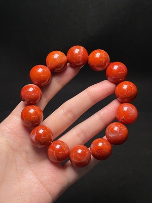 C37435840 Red Agate Bracelet with Visible Organic Matter, Total Weight Approximately 40.75g, Size About 10.9mm