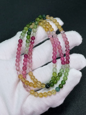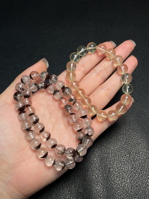 C36274100 Tourmaline bead strand with visible organic matter, total weight approx. 42.44g, size about 6.7mm