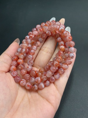 C30469932 Red Agate Bracelet with Visible Organic Matter, Total Weight Approximately 16.11g, Bead Size About 6.9mm