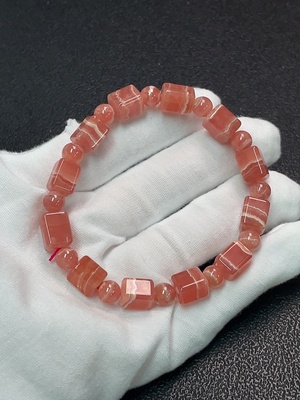 C35120549 Rhodochrosite Bracelet with Visible Organic Matter, Total Weight Approx. 26.32g, Size About 6.2-7.3mm
