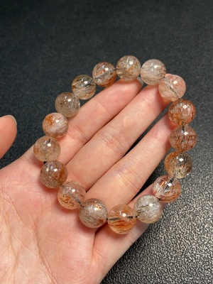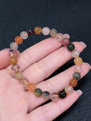 C38484413 Crystal bracelet, color origin undetermined, organic matter visible, total weight approx. 13.34g, size about 7.2mm (color, filled)