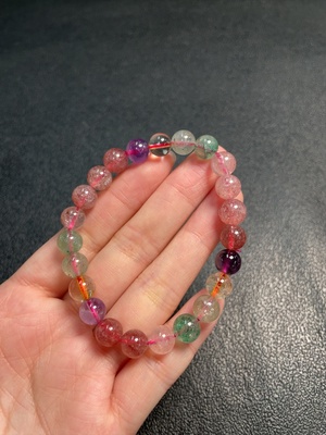 C37435919 Crystal Bracelet (Purple Only, Non-Natural Accent Stones, Approx. 17.46g Total Weight, 8mm Beads, Mixed Stones)