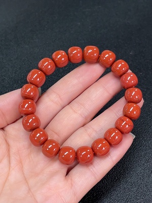 C37370054 South Red Agate Bracelet with Visible Organic Matter, Total Weight Approximately 33.24g, Bead Size Around 9.2mm
