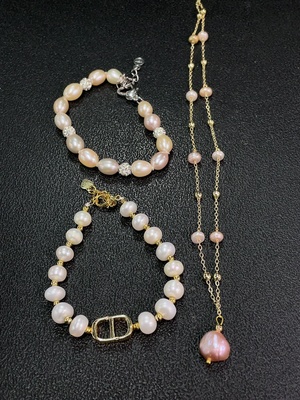 C37448746 Pearl Bracelet + Beaded Chain Non-Gold Total Weight Approx. 30.86g Sell as a Lot