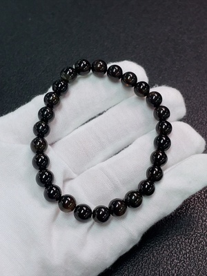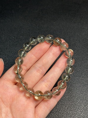 C35183802 Tourmaline Bracelet with Visible Organic Matter, Total Weight Approx. 15.43g, Bead Size 7mm, Accent Stones May Be Non-Natural (Including Inclusions)