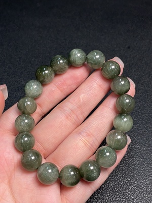 C35120559 Tourmaline bead strand with other mineral components, visible organic matter, total weight approximately 25.93g, size about 5.7mm