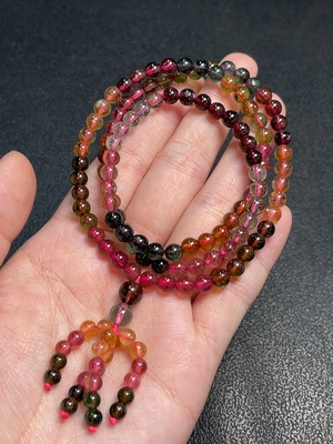 C36273128 Tourmaline bead strand with visible organic matter, total weight approximately 15.75g, about 4.2mm in size