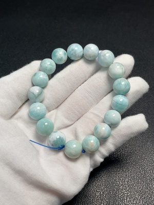C36321608 Larimar bead bracelet with visible organic matter, total weight approx. 48.07g, bead size approx. 12.6mm
