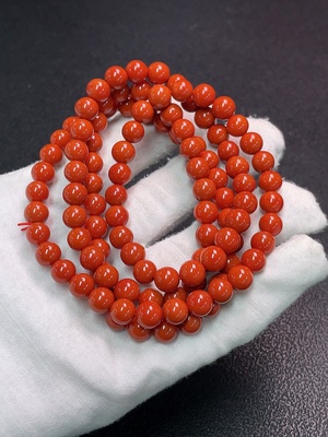 C36239859 Southern Red Agate Bead Strand with Visible Organic Matter, Total Weight Approx. 31.58g, Size Approx. 5.8mm