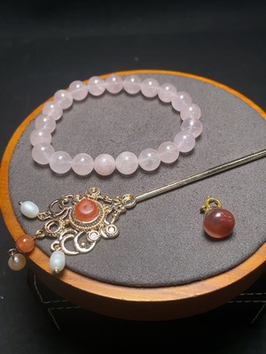 C34988803 Crystal Bracelet + Southern Red Agate Pendant + Hairpin with Pearl Hair Clip
