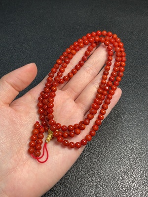 C37456597 South Red Agate Bead Necklace with Visible Organic Matter, Total Weight Approximately 29.64g, Bead Size Around 5.2mm, Non-Gold