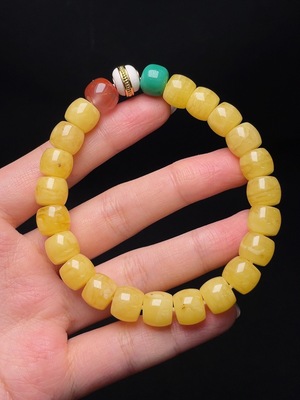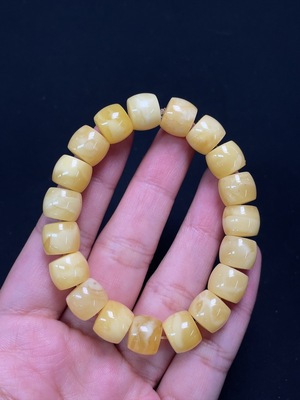 C37448000 Amber Beeswax Bracelet (largest bead only, total weight approx. 13.55g, stones may be non-natural/non-gold, mixed inclusions)