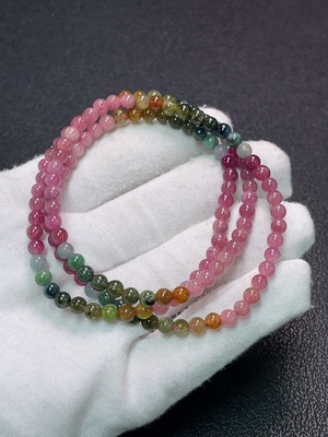 C36273128 Tourmaline bead strand with visible organic matter, total weight approximately 15.75g, about 4.2mm in size