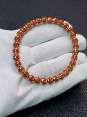 C35092533 Red Agate Bracelet with Visible Organic Matter, Non-Gold, Total Weight Approximately 17.07g, Size About 5.8mm